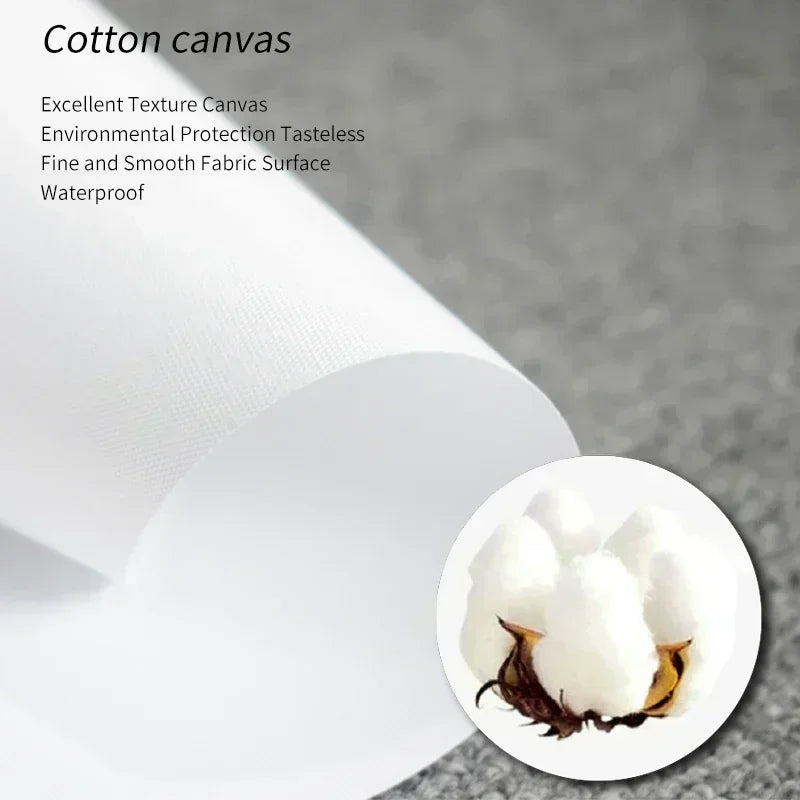 • Montagem: Enrolado (sem moldura) ou esticado em chassi de madeira