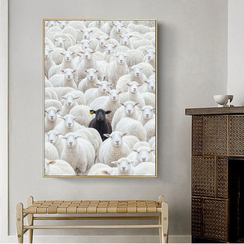 Uma peça de arte que representa autenticidade e individualidade. O quadro “ovelha negra no rebanho” é uma metáfora visual para quem tem coragem de ser diferente.